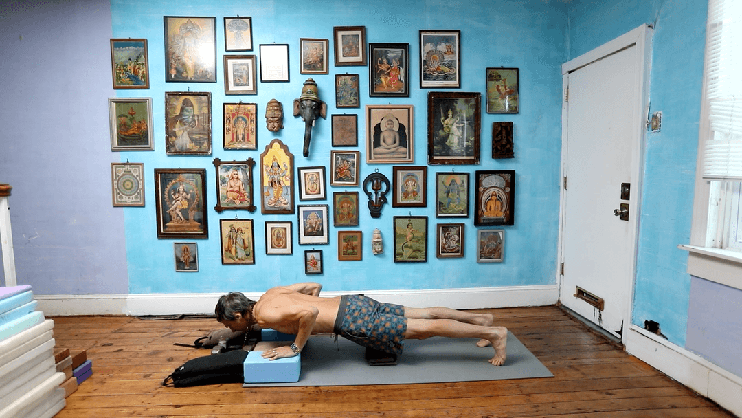 Props used. List of asanas: Surya Namaskara A (3x) Surya Namaskara B (3x) Padangusthasana Padahastasana Utthita Trikonasana Utthita Parsvakonasana Prasarita Padottanasana A & C Parsvottanasana, Utthita Hasta Padangusthasana Dandasana Paschimottanasana A, Janu Sirsasana A Marichyasana A Navasana (5x) Urdhva Dhanurasana Sarvangasana Halasana Karnapidasana Matsyasana Uttana Padasana Sirsasana Baddha Padmasana Ujjayi breathing in Padmasana Savasana