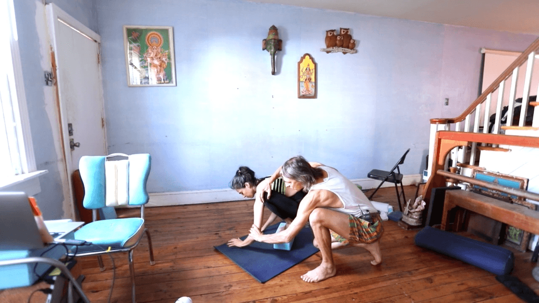 This class frames Bakāsana as balancing in a full squat on your arms, more like Mālāsana than the common “knees-in-armpits” version. Begin with supported squats on a block, heels lifted, knees wrapping outside the arms. From there, practice rocking drills: tiny forward-and-back shifts with hands grounded, arms bent, torso and hips staying level. Progress to pointing one foot, then both, while elbows remain bent. The key is patience: do not lift hips prematurely, but instead lift everything together—feet, shins, thighs, pelvis, spine—in proportion. Only at the end, finish with a power surge to straighten the arms. Floor drills (supine with block support, arms threading through legs) help train the compact Bakāsana shape and connect it to deeper postures like Yoga Nidrāsana. The result: a clear, strength-building path to a steady, compact Bakāsana built on proportion, rhythm, and whole-body participation
