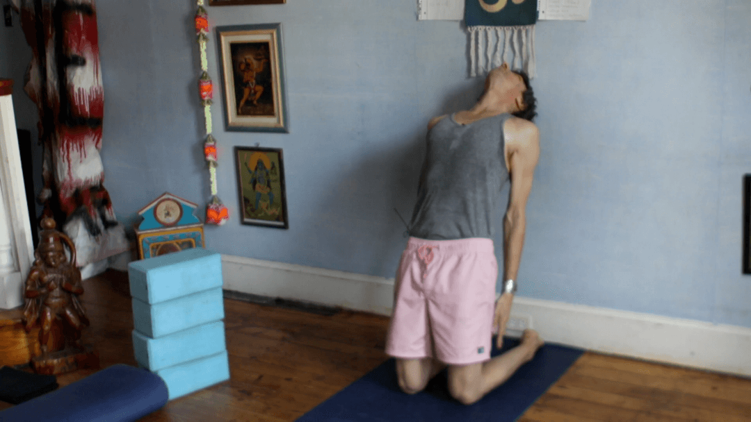 A playful yet technical class that breaks down the art of extension from Shalabhasana to Kapotasana. We begin by studying neutral pelvis and spine, learning to distinguish forward, backward, and neutral tilts in Downward Dog, Plank, and all fours. From there, we explore how arms and legs root to free the spine for backbending. Using Bridge and Setu Bandhāsana variations, we strengthen legs as “holy cement,” fixing them so the spine can safely coil upward. Props (blocks, wall, chair, “T” station) help students progress through Shalabhāsana, Supta Vīrāsana, Dhanurāsana, Ustrāsana, and dropback preparations. We emphasize slow, repeatable steps: stabilizing thighs, lifting chest first, and separating spinal action from leg stability. The practice blends meditation with strength—teaching that mastery means enjoying every step, not just reaching the “hardest” version.